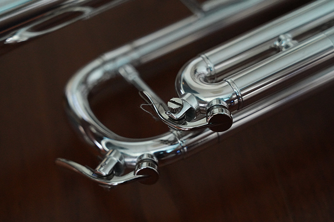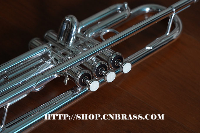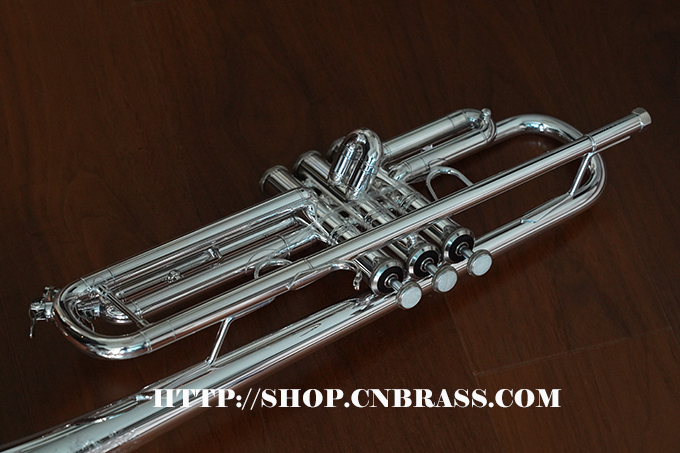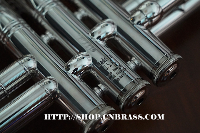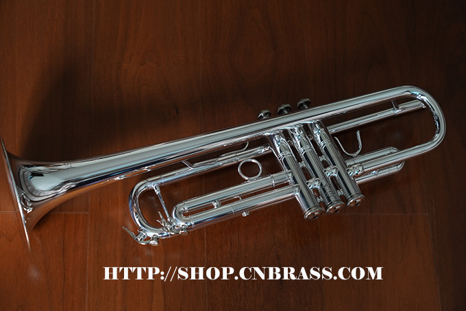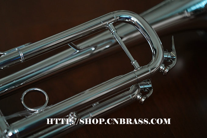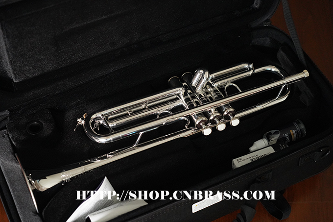 0.459管径,分体式黄铜喇叭,4-13/16圆钢线卷边喇叭,黄铜吹口管,单点活塞定位的蒙耐尔活塞,一号变音管马鞍形指钩和三号变音管固定指环,主变音管和三号变音管上放水键,镀银表面 Vincent Bach 5C号嘴,轻体耐用背包式小号箱,轻体耐用背包式小号箱